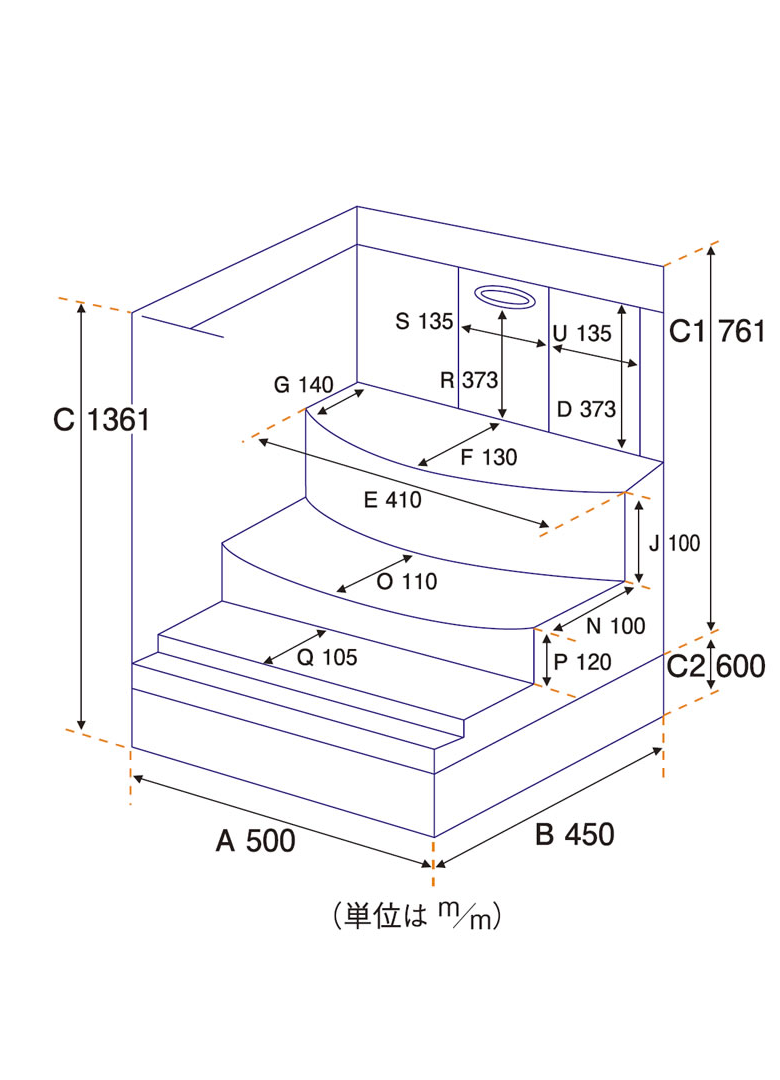 H137cm(76.1cm+60cm)×W50cm×D45cm